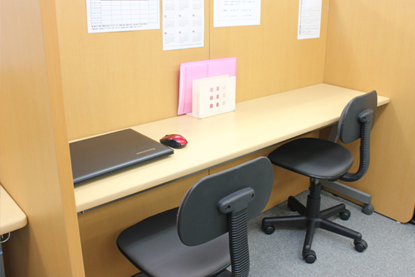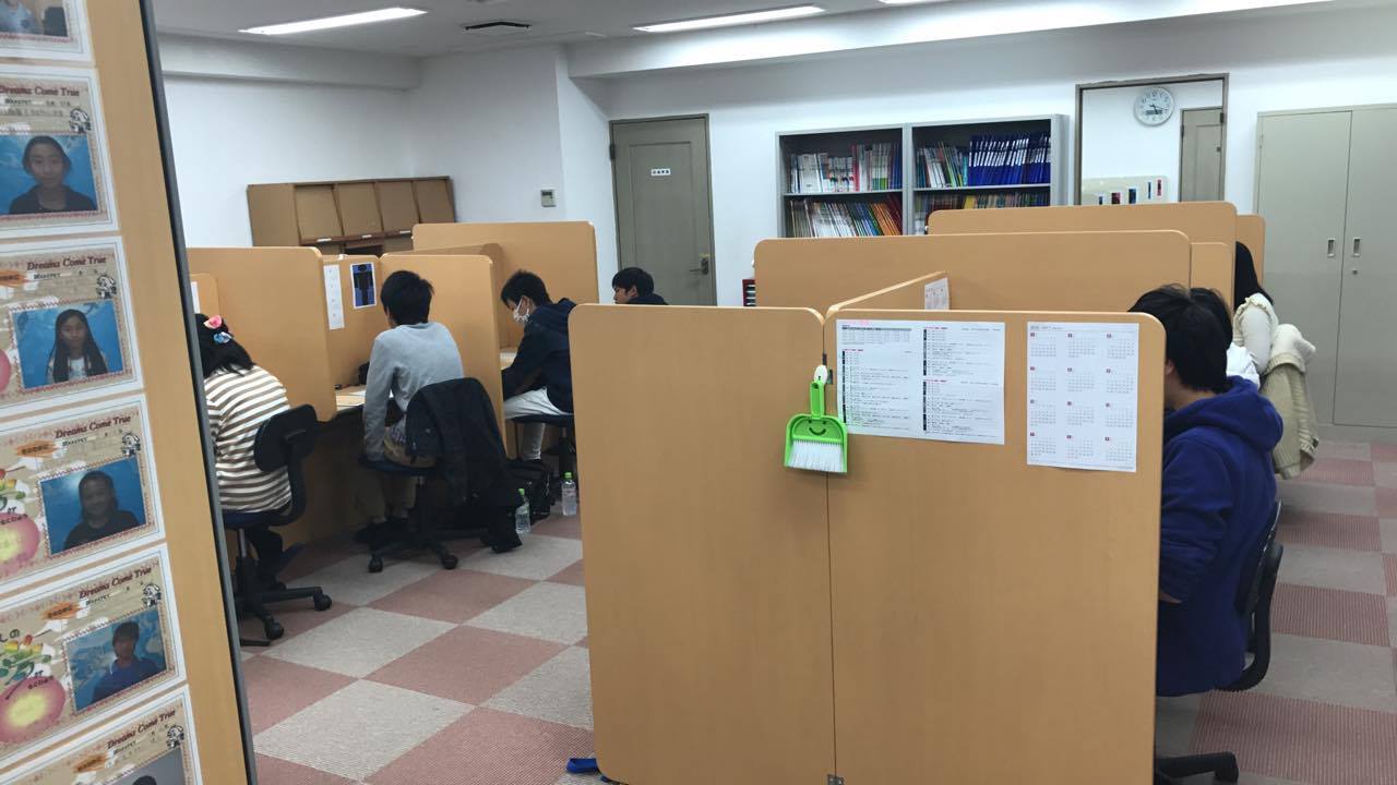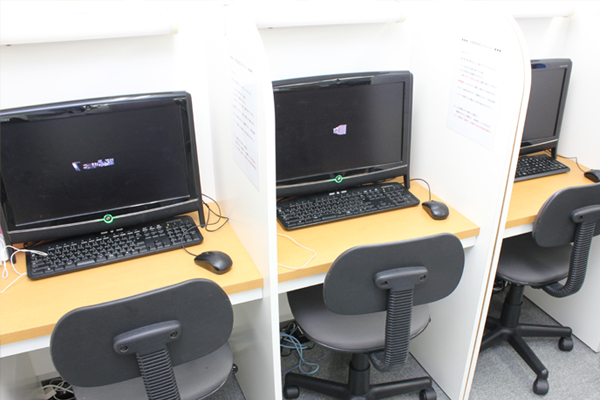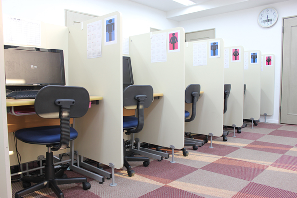 これは費用対効果の高い学習システムの一環でもありますが、自習室の各ブースにパソコンを設置し、PC授業を月曜日~土曜日の間毎日いつでも好きな時間に受けることができます。自分の力だけでは理解しきれない部分をカバーできます。